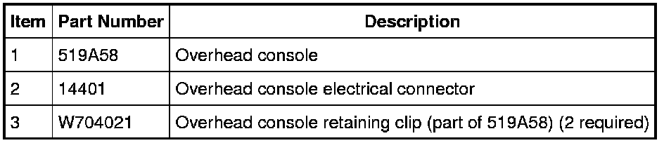 1. Pull the overhead console straight down, releasing the 2 side retaining clips.
