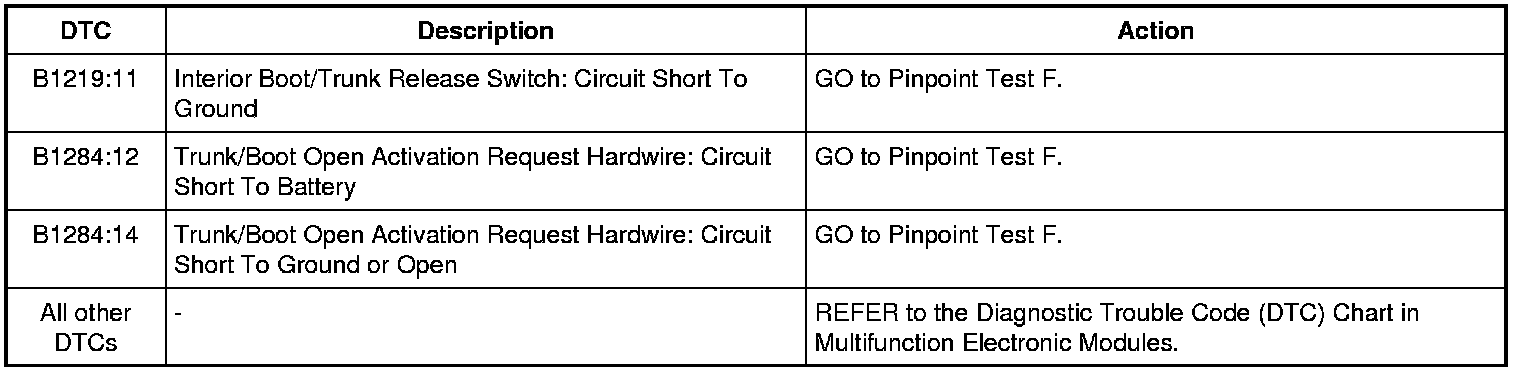 NOTE: This module utilizes a 5-character DTC followed by a 2-character failure-type code. The failure-type code provides information about specific fault conditions such as opens, or shorts to ground. Continuous memory DTCs have an additional 2-character DTC status code suffix to assist in determining DTC history.