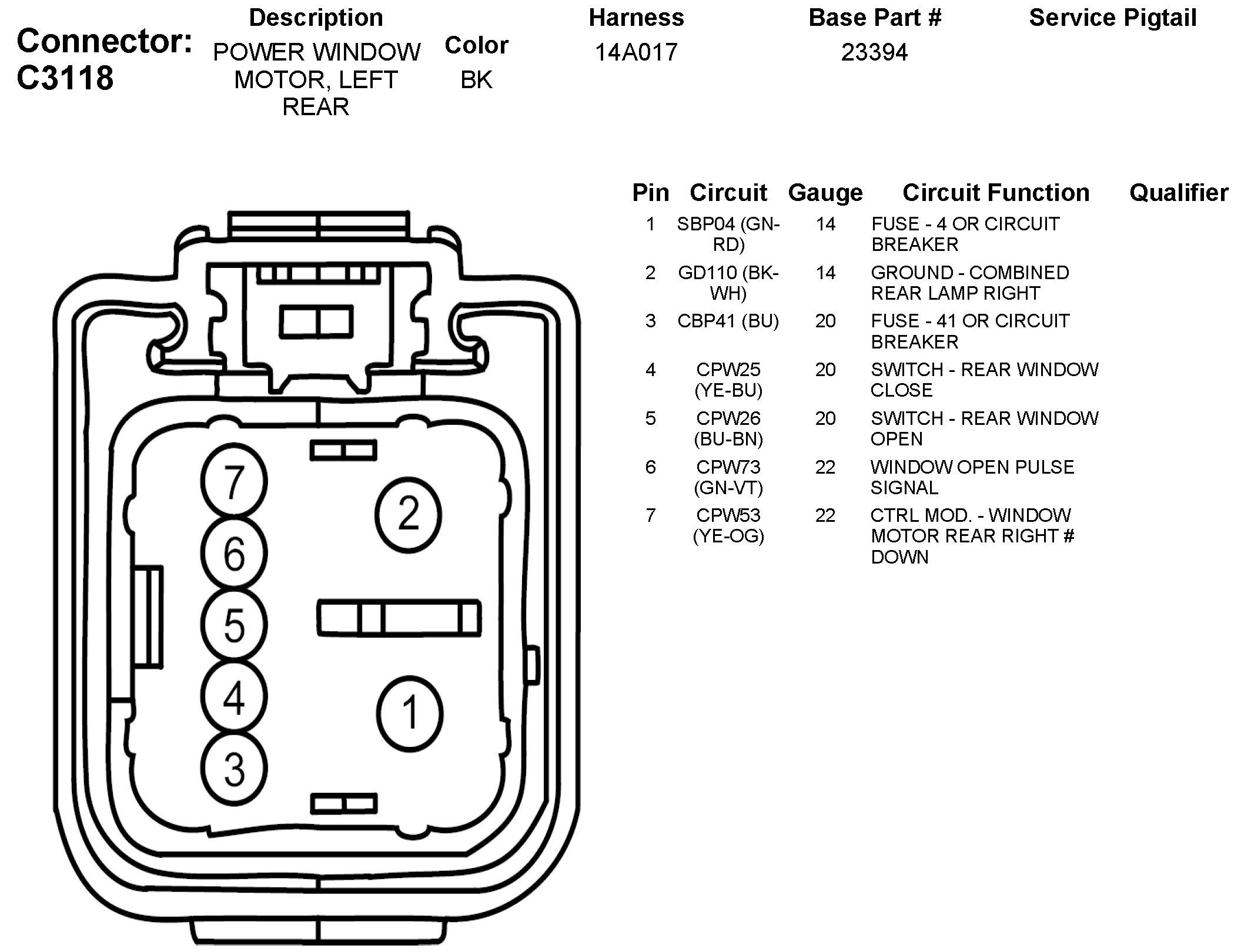 C3118 Power Window Motor, Left Rear