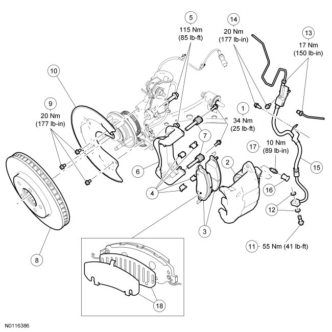 1. NOTE: A revised part, with the same base part number, has been released for the RH brake hose. When installing a new RH brake hose, position the anti-rotation tab on the mounting bracket toward the front of the vehicle and install the bolt with the head toward the rear of the vehicle.