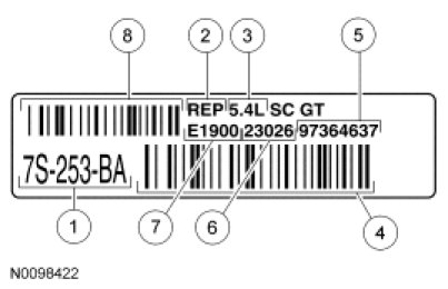 Always refer to these labels when installation of new parts is necessary or when checking engine calibrations. The engine parts often differ within a CID family. Verification of the identification codes will make sure that the correct parts are obtained. These codes contain all the pertinent information relating to the dates, optional equipment and revisions. The Ford Master Parts Catalog contains a complete listing of the codes and their applications.