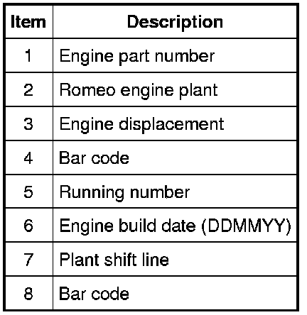 The engine code information label, located on the front side of the valve cover, contains the following: