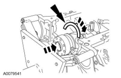10. Push the crankshaft forward to seat the crankshaft thrust washer. Hold the crankshaft in the forward position.