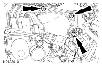 106. Install a new gasket, the Throttle Body (TB) and spacer assembly and the 4 bolts.
