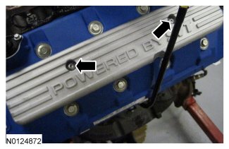 83. Install the LH coil-on-plug cover and the 2 bolts.