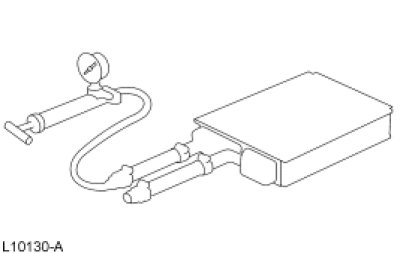 8. If the pressure drops, check the heater water hose connections to the core tubes for leaks. If the heater water hoses do not leak, remove the heater core from the vehicle and carry out the bench test.