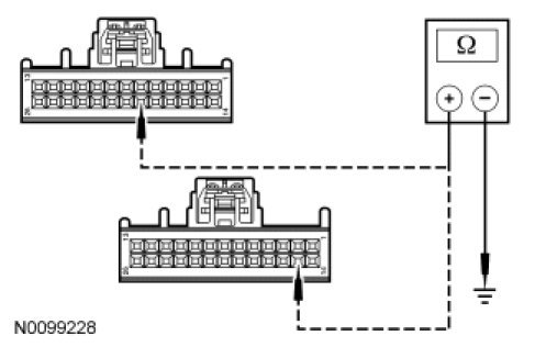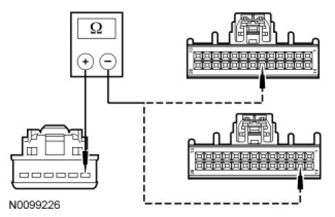 - Measure the resistance between HVAC module C294B-15, circuit CH213 (BN/GN), harness side and HVAC module C294B-14, circuit CH212 (BU/OG), harness side.