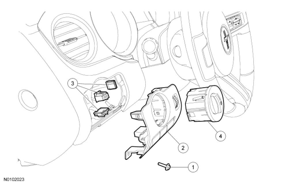 1. Remove the steering column opening trim panel. For additional information, refer to Instrument Panel and Console Instrument Panel - Exploded View.