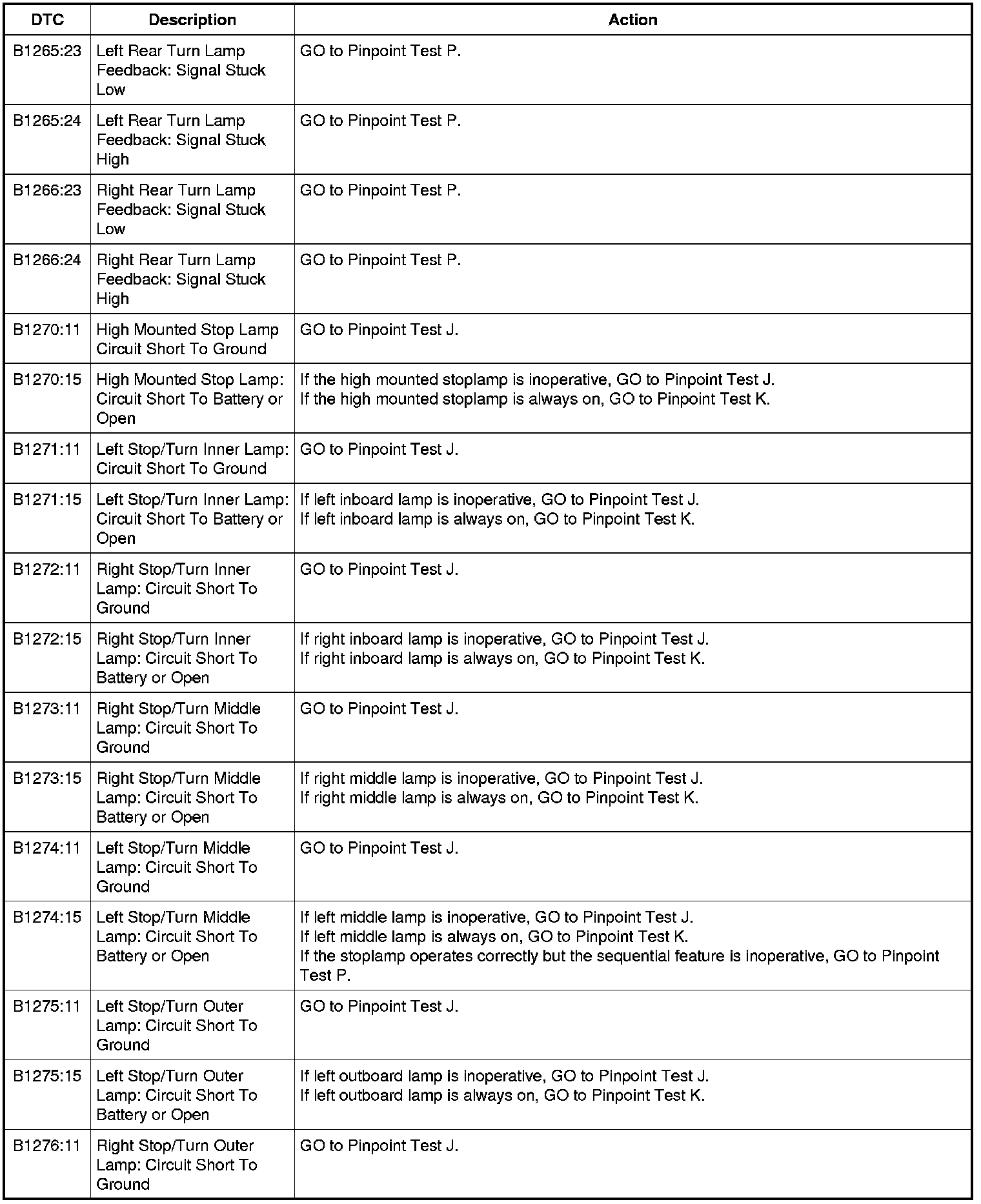 Diagnostic Trouble Code (DTC) Chart