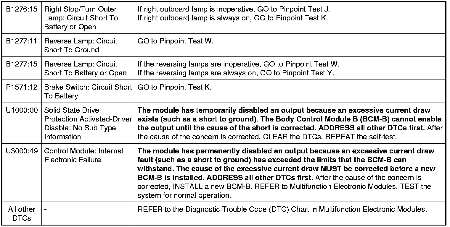 Body Control Module B (BCM-B) DTC Chart