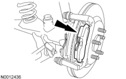 4. NOTE: Place a shop towel between the caliper and the brake disc.