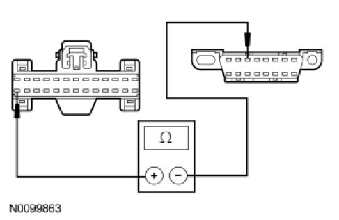 - Measure the resistance between the SJB C2280b-38, circuit VDB07 (VT/OG), harness side and the DLC C251-11, circuit VDB07 (VT/OG), harness side.