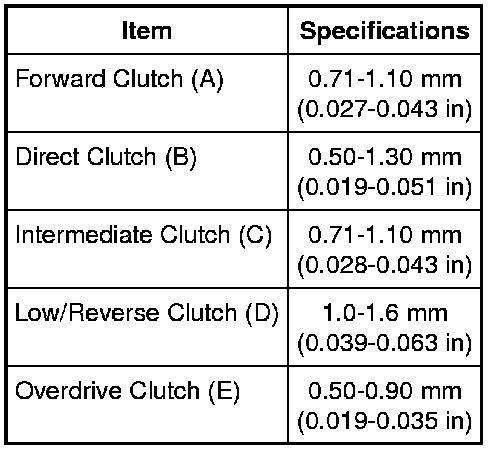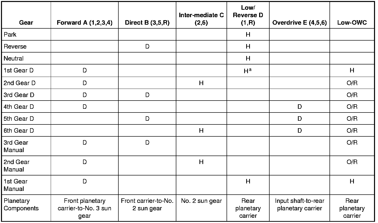 Clutch Application Chart