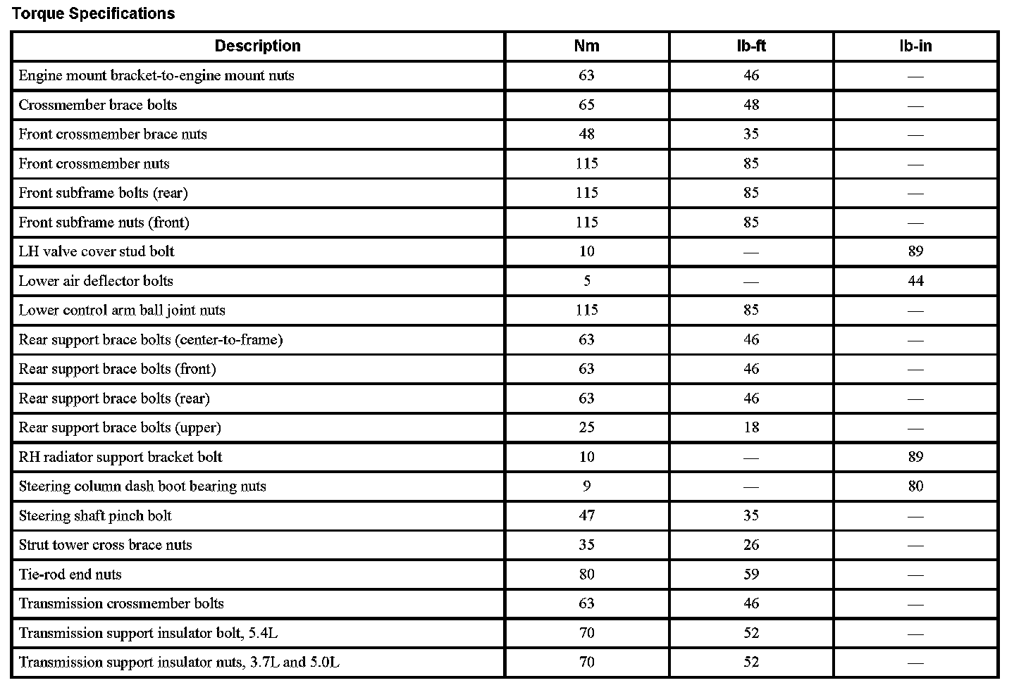 Torque Specifications: