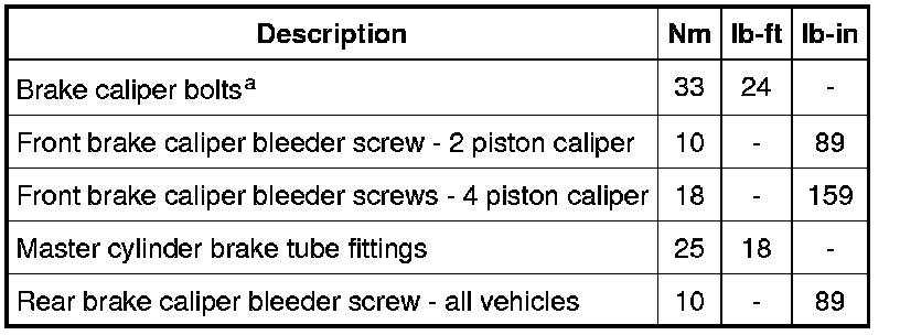 a The bolts retaining the front caliper halves together on 4 piston caliper equipped vehicles are not serviceable.