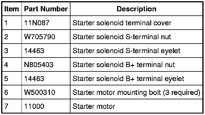 WARNING: Always disconnect the battery ground cable at the battery before disconnecting the starter motor battery terminal lead. If a tool is shorted at the starter motor battery terminal, the tool can quickly heat enough to cause a skin burn. Failure to follow this instruction may result in serious personal injury.