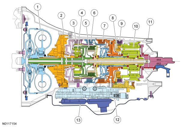 This transmission has the following major components: