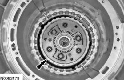17. Install the rear planetary ring gear and output shaft assembly.