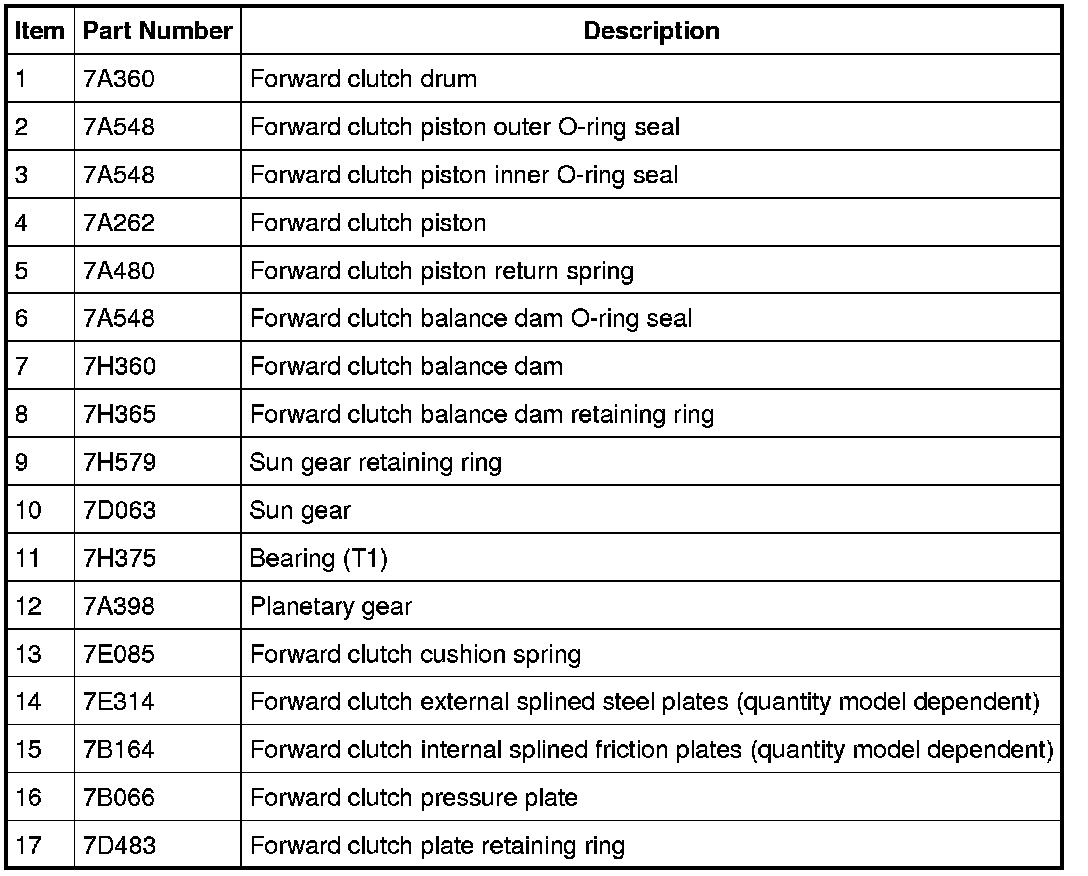 15. Clean and inspect the components of the forward clutch assembly for damage and install new components as necessary.