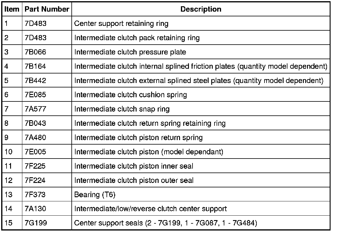 NOTICE: The intermediate clutch plate quantity is model dependent on engine size. Check the clutch plate quantity charts in specifications for the correct clutch plate quantity. Failure to install the correct clutch plate quantity will result in transmission failure.