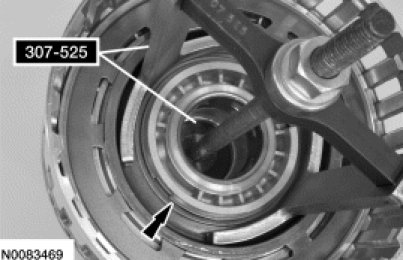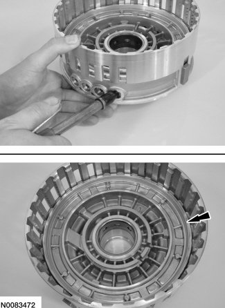 4. Using the Clutch Spring Compressor, remove and discard the intermediate clutch return spring retainer.