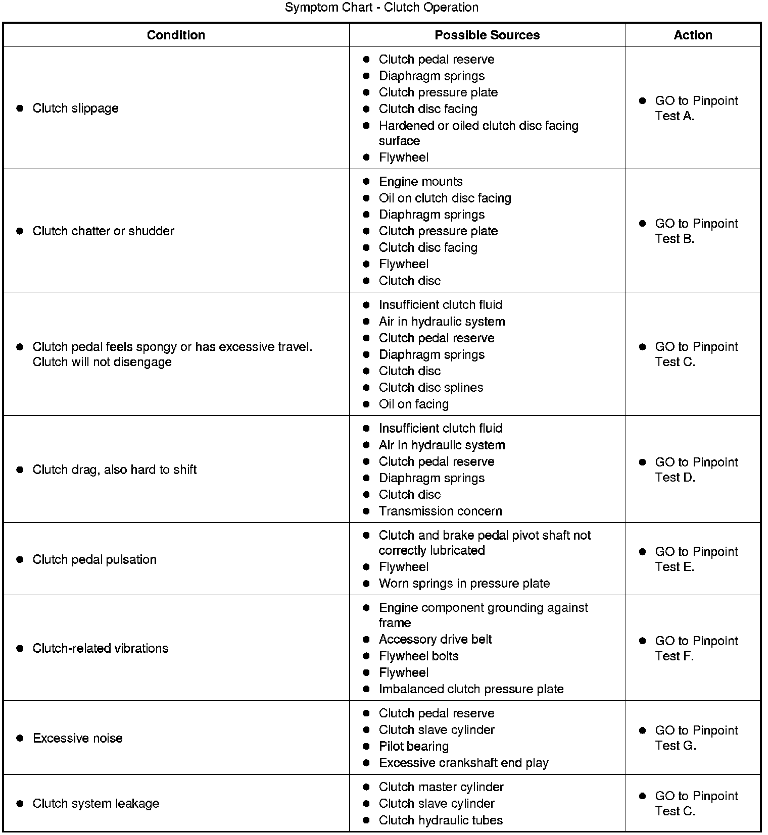 Symptom Chart - Clutch Operation