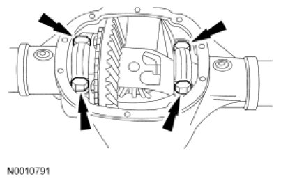 4. NOTE: Index-mark the position of the differential bearing caps, as arrows may not be visible. The differential bearing caps must be installed in their original locations and positions.