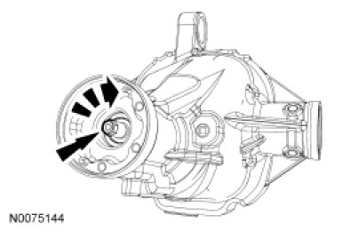 7. NOTE: Under no circumstances is the pinion nut to be backed off to reduce drive pinion bearing preload. If reduced drive pinion bearing preload is required, a new drive pinion collapsible spacer and pinion nut kit must be installed.