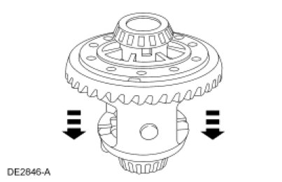 1. Remove the 2 differential pinion gears and 2 thrust washers.