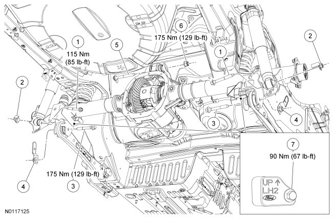 6. Remove the panhard rod. For additional information, refer to Rear Suspension Panhard Rod.