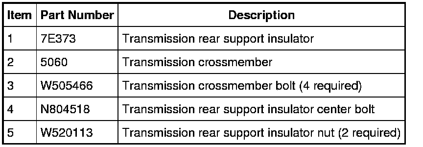 Remove the transmission crossmember. For additional information, refer to Uni-Body, Subframe and Mounting System Crossmember Brace - Exploded View.