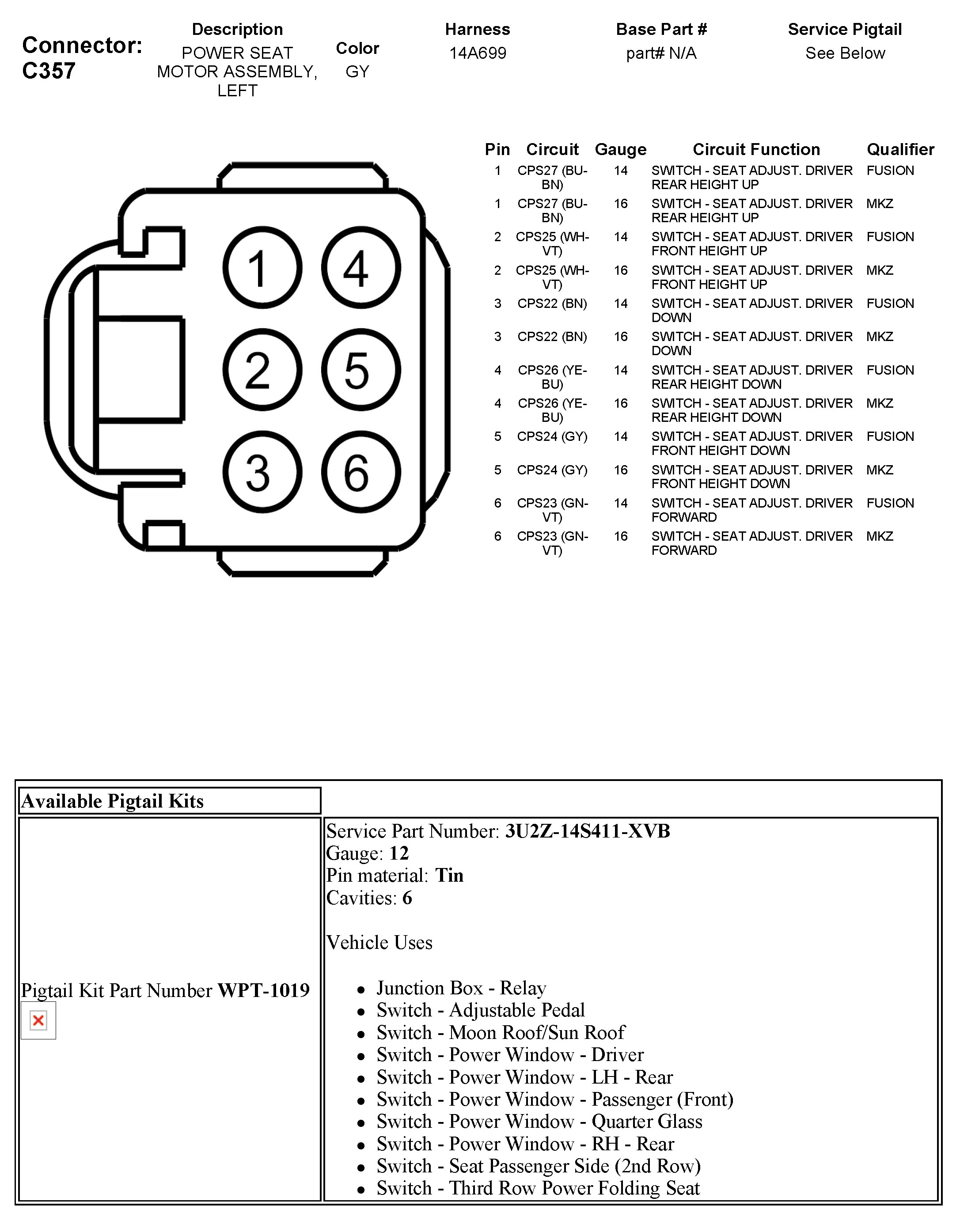 C357 Power Seat Motor Assembly, Left