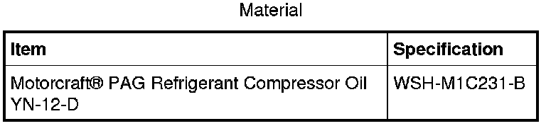NOTICE: Use only the Air Conditioning (A/C) refrigerant compressor oil specified for this vehicle configuration. Use of any A/C refrigerant compressor oil other than what is specified will contaminate and damage the A/C system.