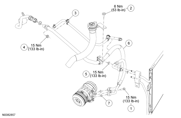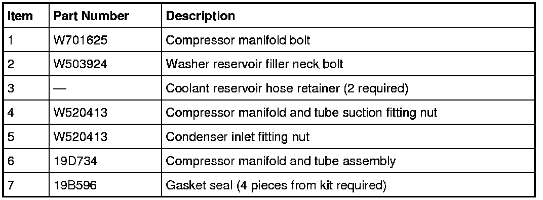 NOTICE: Do not stress or bend the aluminum lines on the compressor manifold and tube assembly to facilitate removal. Bending or squeezing the lines together may damage the welds and lead to premature failure of the line.