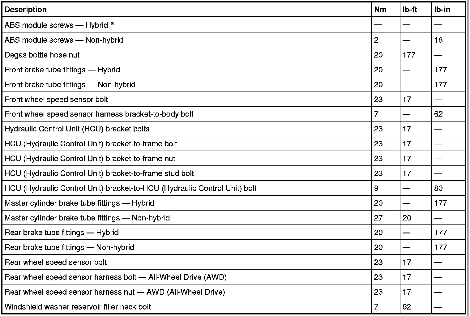 Torque Specifications