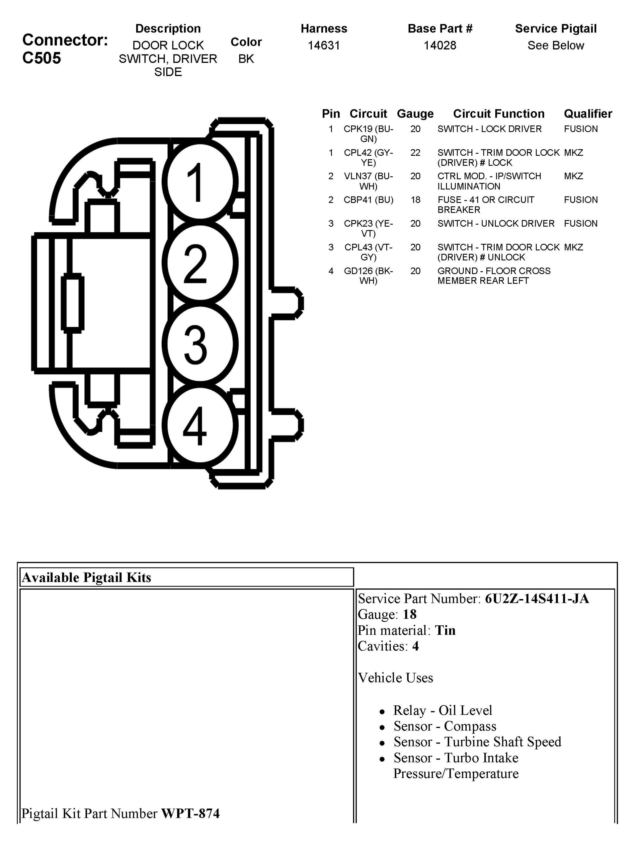 C505 Door Lock Switch, Driver Side