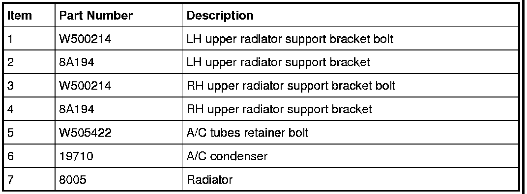 7. Remove the 2 bolts from the upper radiator support brackets and position the radiator towards the engine and remove the 2 upper radiator support bracket from the radiator.