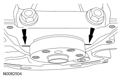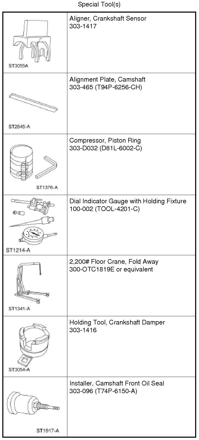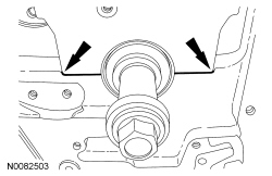 NOTICE: Do not loosen or remove the crankshaft pulley bolt without first installing the special tools as instructed in this procedure. The crankshaft pulley and the crankshaft timing sprocket are not keyed to the crankshaft. The crankshaft, the crankshaft sprocket and the pulley are fitted together by friction, using diamond washers between the flange faces on each part. For that reason, the crankshaft sprocket is also unfastened if the pulley bolt is loosened. Before any repair requiring loosening or removal of the crankshaft pulley bolt, the crankshaft and camshafts must be locked in place by the special service tools or severe engine damage can occur.