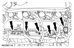 109. Connect the 4 fuel injector electrical connectors, radio capacitor electrical connector and the Camshaft Position (CMP) sensor electrical connector.