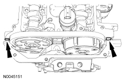 NOTICE: During engine repair procedures, cleanliness is extremely important. All parts must be thoroughly cleaned and any foreign material, including any material created while cleaning gasket surfaces, that enters the oil passages, coolant passages or the oil pan, can cause engine failure.