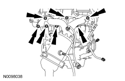 137. Attach the 2 engine wiring harness pin-type retainers.