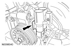 NOTICE: Do not loosen or remove the crankshaft pulley bolt without first installing the special tools as instructed in this procedure. The crankshaft pulley and the crankshaft timing sprocket are not keyed to the crankshaft. The crankshaft, the crankshaft sprocket and the pulley are fitted together by friction, using diamond washers between the flange faces on each part. For that reason, the crankshaft sprocket is also unfastened if the pulley bolt is loosened. Before any repair requiring loosening or removal of the crankshaft pulley bolt, the crankshaft and camshafts must be locked in place by the special service tools or severe engine damage can occur.