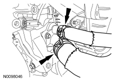 119. Attach the 2 auxiliary coolant pump wiring retainers and the lower radiator hose retainer.