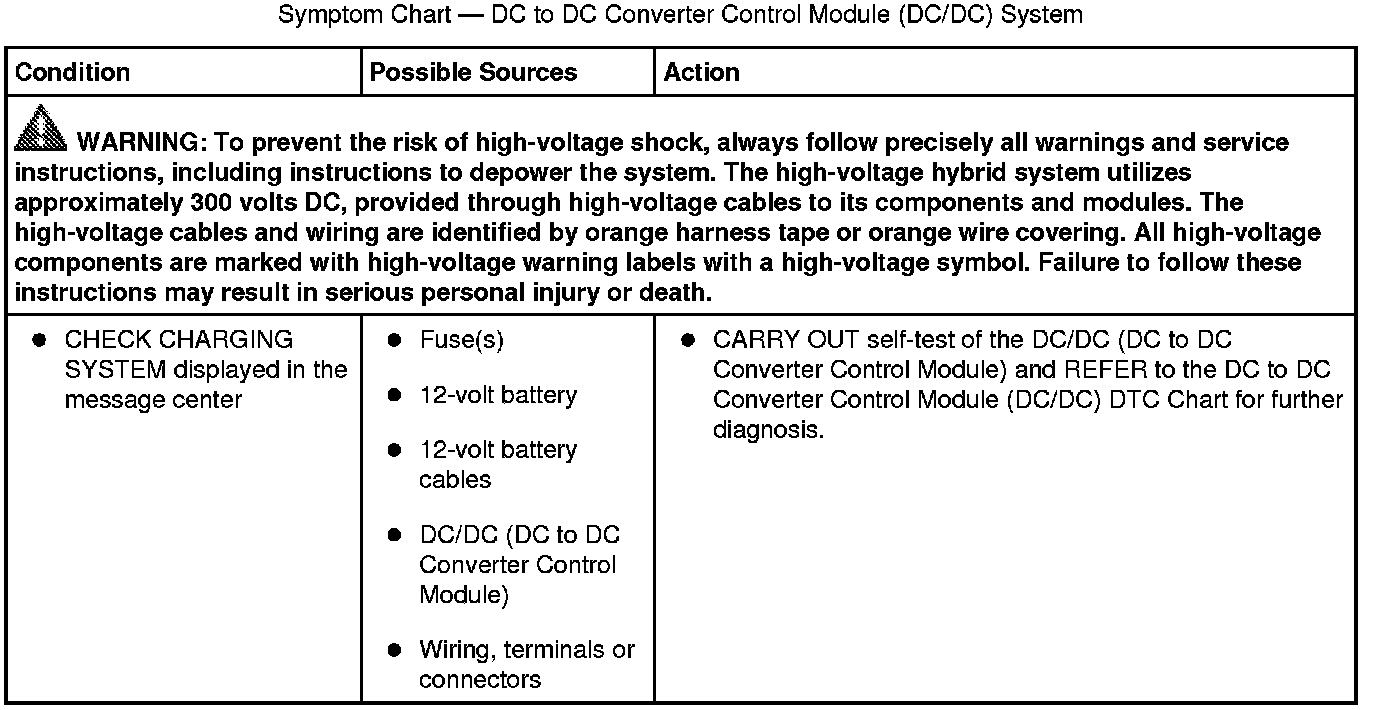 Symptom Chart - DC To DC Converter Control Module (DC/DC) System