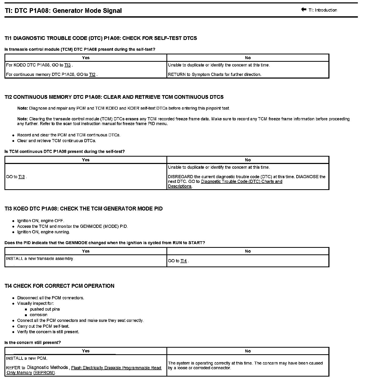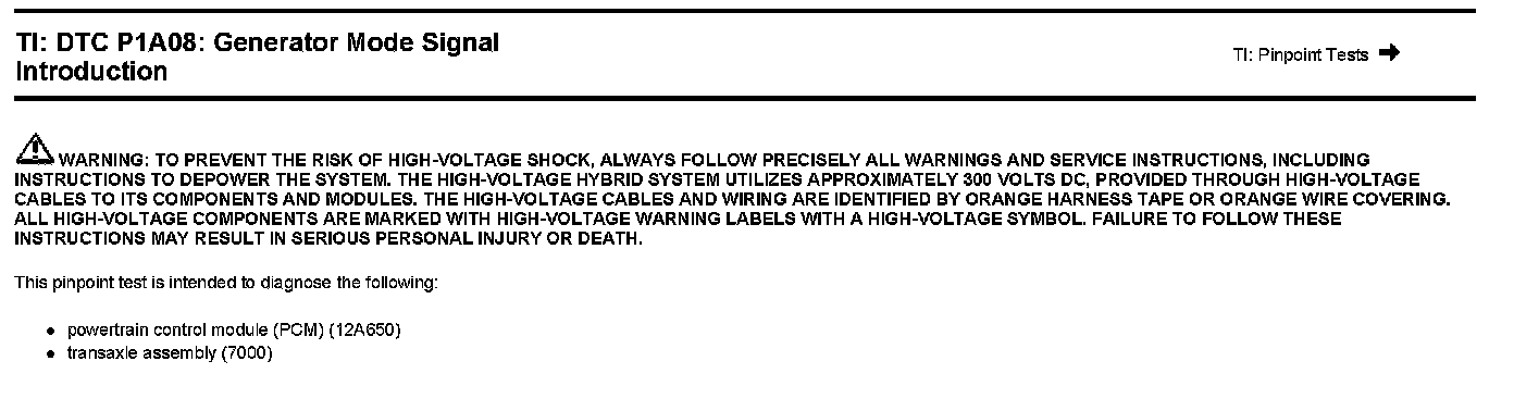 Test TI: DTC P1A08: Generator Mode Signal