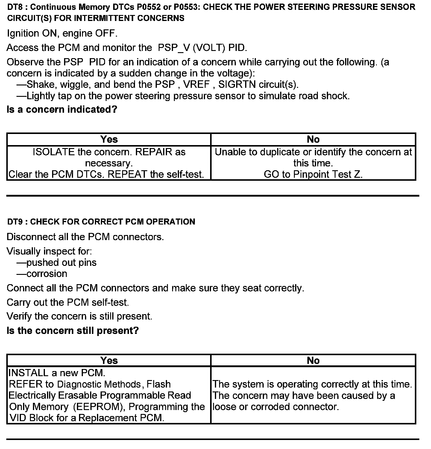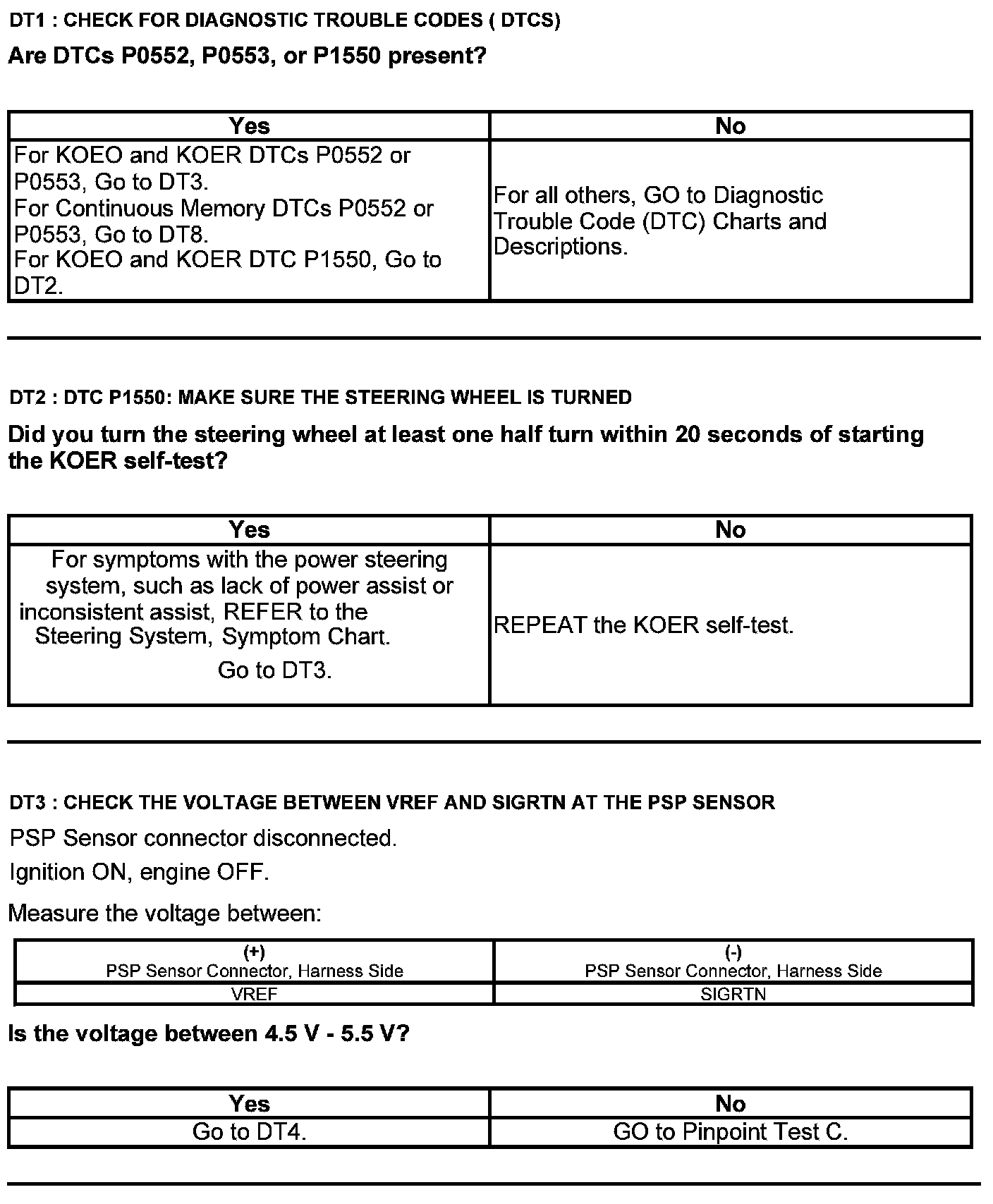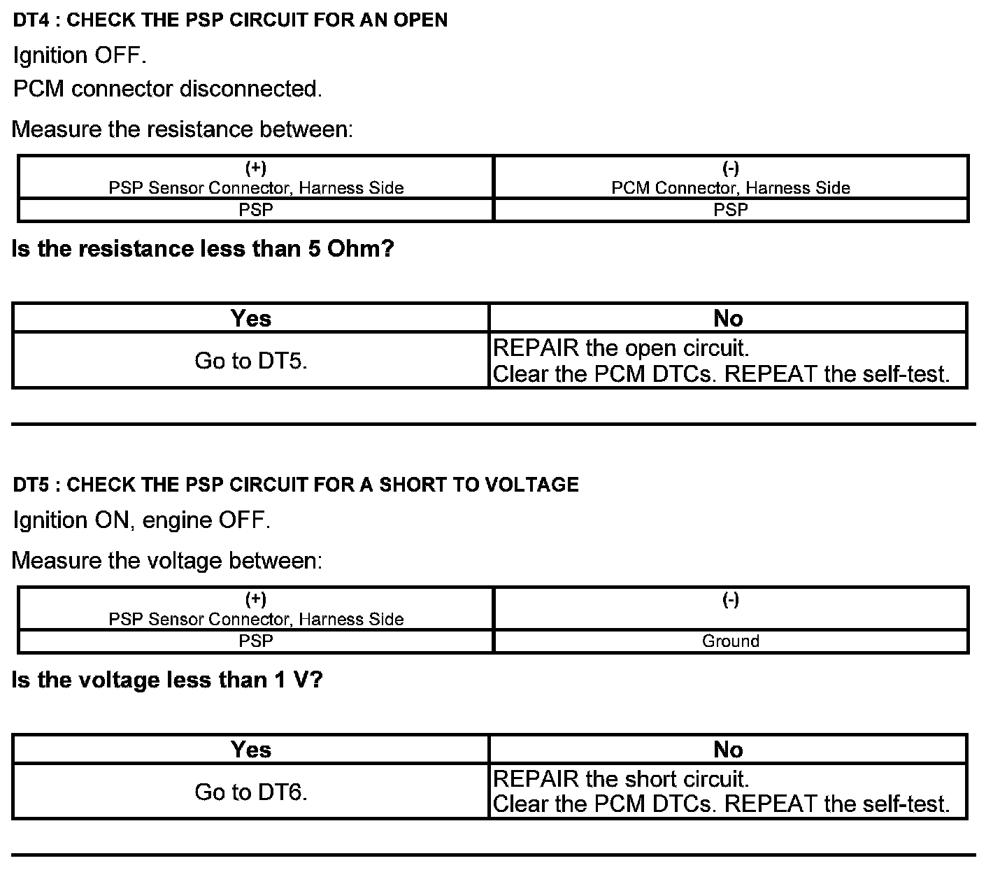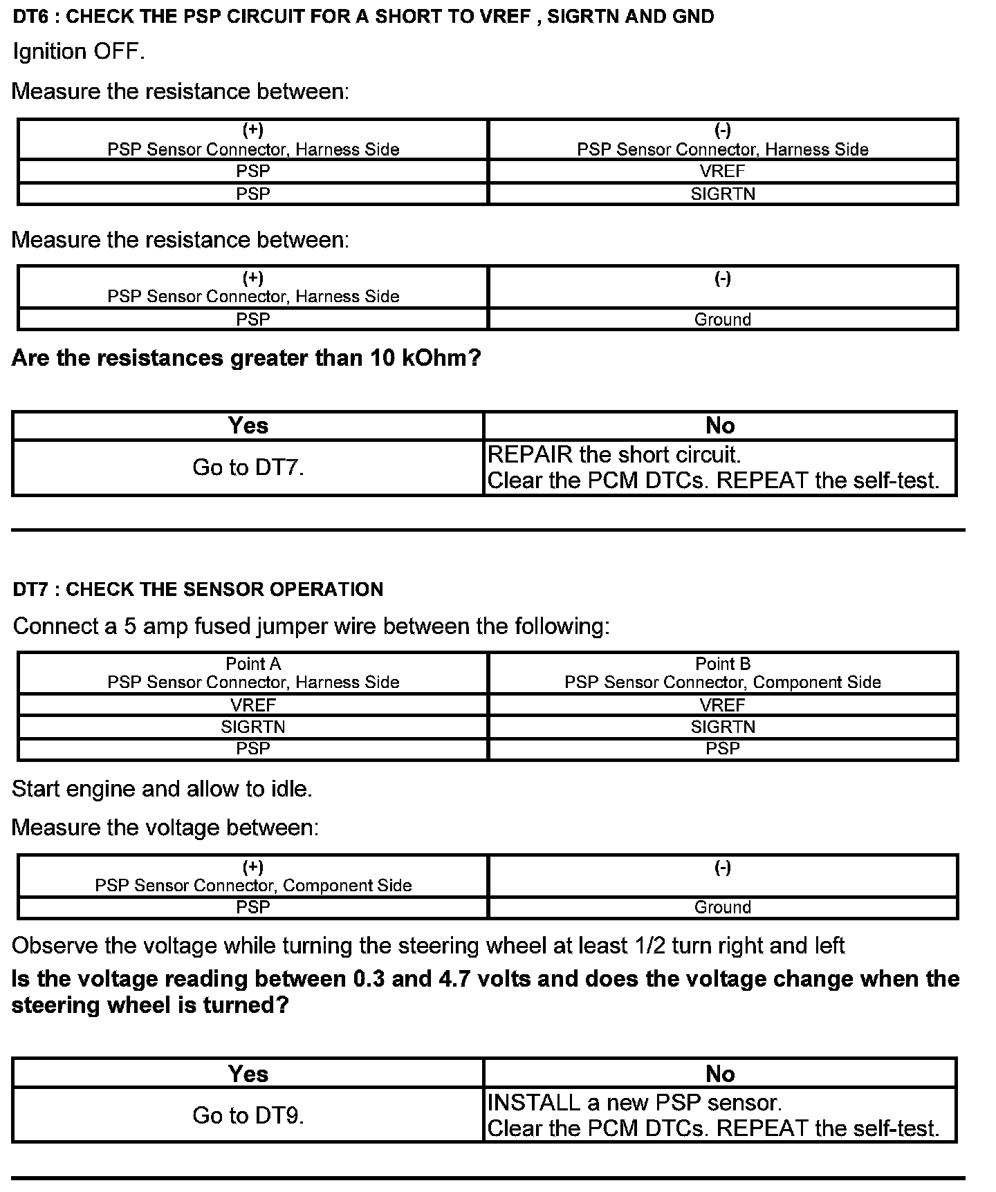Test DT: Power Steering Pressure (PSP) Sensor
