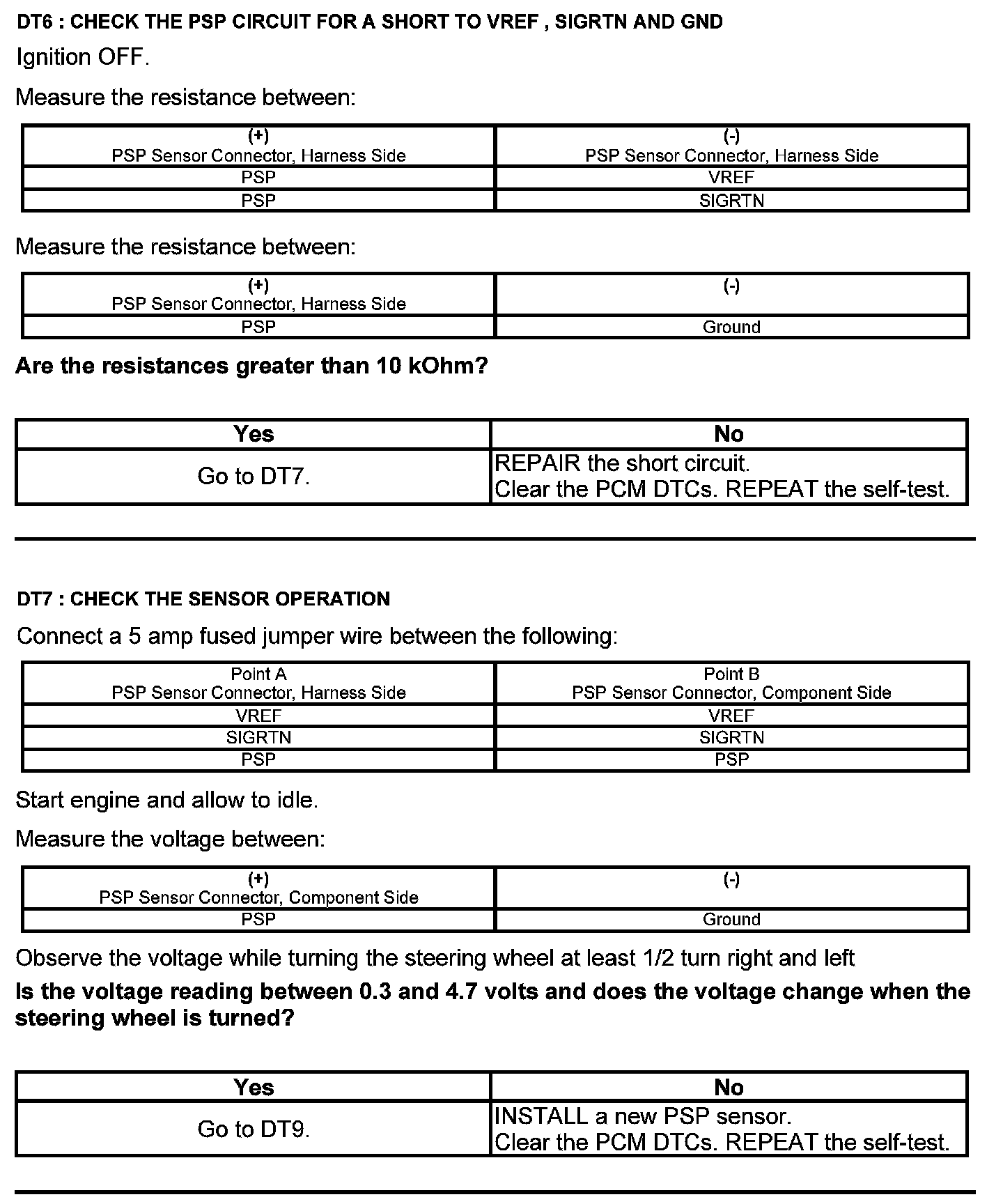 Test DT: Power Steering Pressure (PSP) Sensor