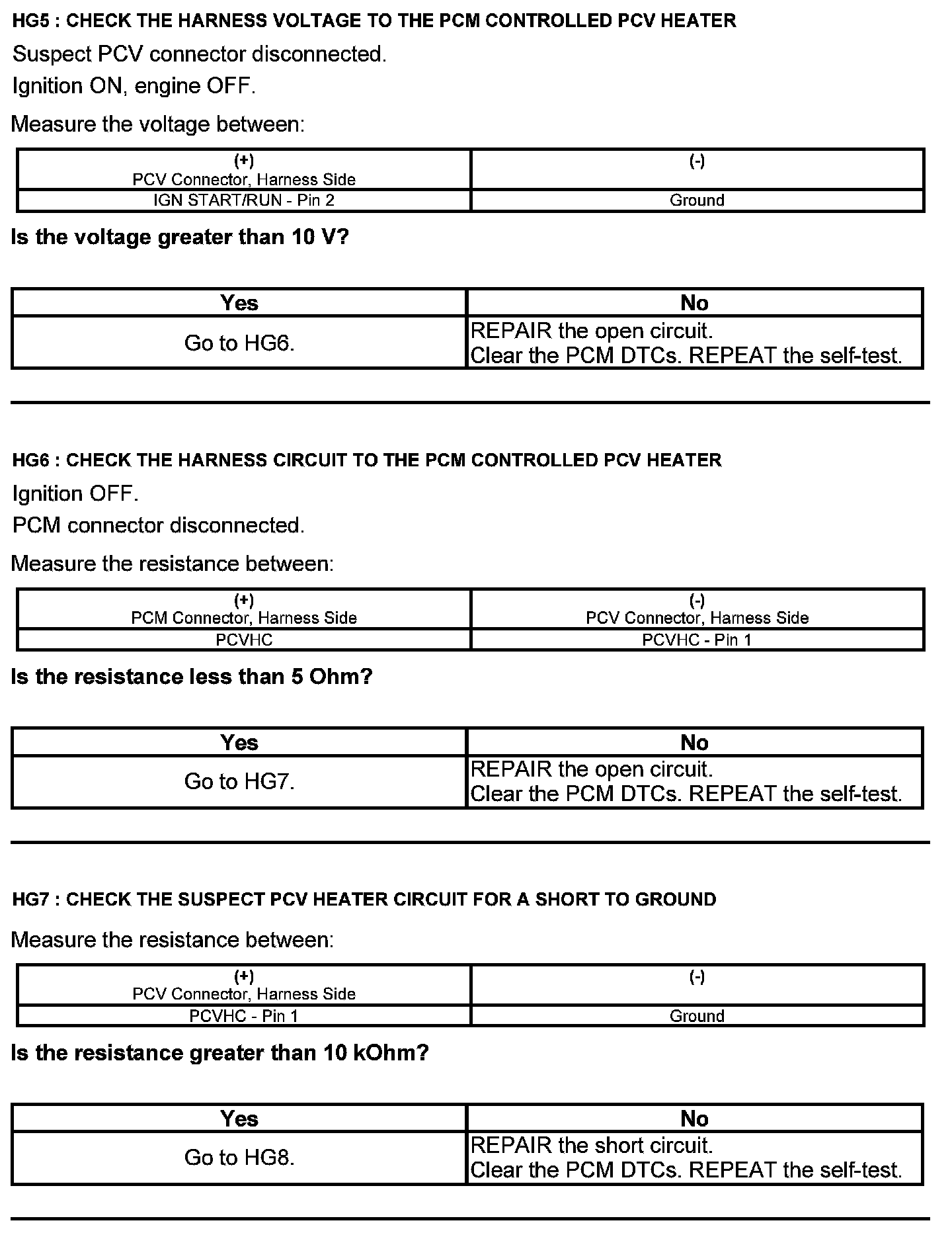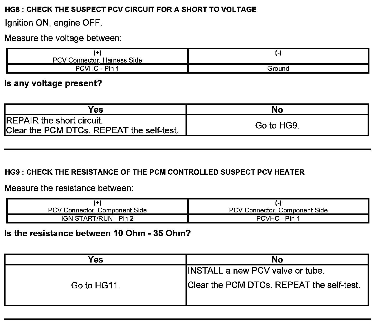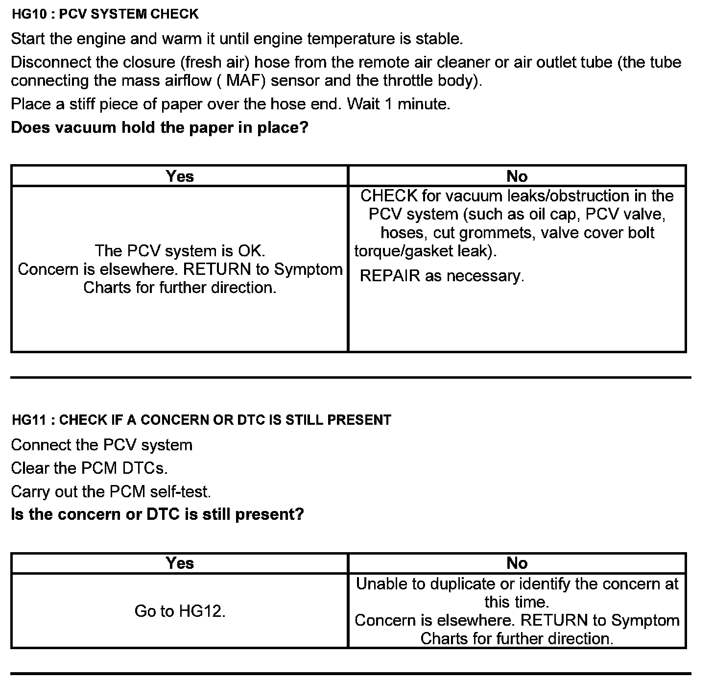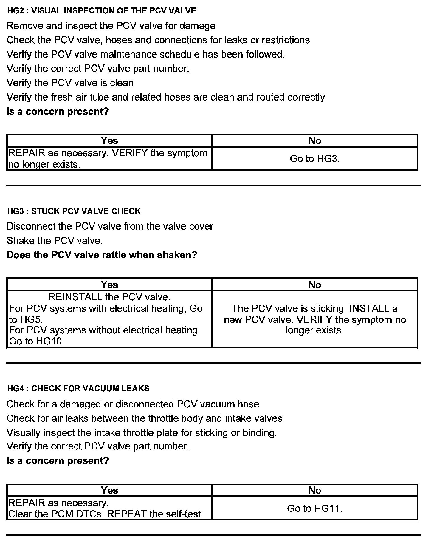 Test HG: Positive Crankcase Ventilation (PCV) System