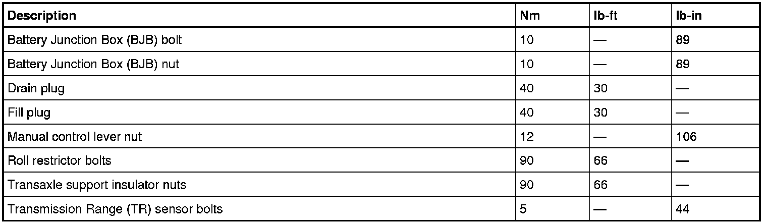 Torque Specifications