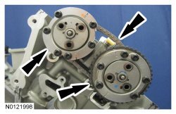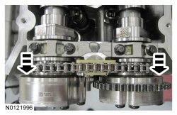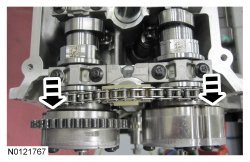 11. Remove the RH VCT (Variable Camshaft Timing) assemblies and the RH secondary timing chain.